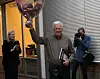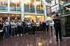 Ansatte sang bursdagssang for sjefen, Trygve Hegnar. Foto: Glenn Slydal Johansen