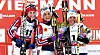 Sølvmedaljør Astrid Uhrenholdt Jacobsen sammen med gullvinner Therese Johaug og svenskenes bronsjevinner Charlotte Kalla etter 15 kilometeren i Falun. Foto: Ulf Palm/Falun 2015