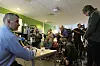 BRUMUNDDAL (Journalisten): Krimkommentator og reportasjeleder Olav Rønneberg sikret av erfaring å ha en fotograf i felt under politiets pressekonferanse i Brumunddal mandag.
