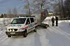 Politiet testet en snøscooter med et fåtall fotografer til stede. Like ved gjødselhaugen de gravde søndag. Foto: Glenn Slydal Johansen
