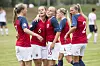 TV 2 skal sende Norges semifinale i J19-EM. Her jubler Noor Eckhoff, Andrea Norheim, Vilde Birkeli, Camila Huseby og Malin Sunde under 1-0-seieren over Frankrike. Foto: Urs Flueeler / Keystone / NTB scanpix