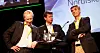 TV 2-sjef Alf Hildrum (t.v.) og NRK-sjef Hans-Tore Bjerkaas sammen med debattleder Trygve Rønningen. Foto: Kathrine Geard