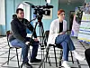 Natalia Tsjaika sammen med Oleksandr Temnikov som har ansvar for lyd og bilde, ute på jobb.Foto: Ole Dag Kvamme