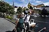 Politisk rådgiver Torkil Vederhus formidler noen råd fra partikollega Rasmus Hansson til Une Aina Bastholm under spaserturen på vei til huset MDG bruker som hovedkvarter i Arendal. Se større bilde her.