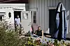 Partiapparatet finner seg til rette i den lune kroken med utemøbler foran inngangen, og er ganske raskt over på videre gjennomgang av innlegget om norske verdier.