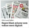Samme artikkel har front-tittelen «Vårt Land faller: Dagen blant avisene som vokser mest digitalt».