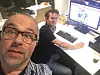 Sjefredaktør Bjørn Sæbø og nyhetsredaktør Lasse Hansen i Rogalands Avis tidlig på valgkvelden.