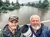 – Bare på den lille timen vi har holdt oss her, har vannet steget med en meter, forteller Aftenposten-fotograf Stein J. Bjørge og journalist Thomas Olsen som rapporterer fra området rundt Dokka.Foto: Stein J. Bjørge / Aftenposten