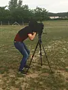 Espen Ramussen i aksjon med kamera fra 2. verdenskrig. Foto: Ronny Berg.