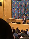 Gard Steiro presenteres som VGs nye sjefredaktør på et allmøte onsdag. Foto: @vgkrim